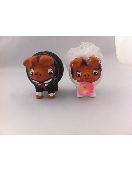 Si vas a una boda y te niegas a dar el típico sobrecito de dinero... o si te vas a casar y algunos de tus invitados también lo harán pronto.....te proponemos estas adorables parejas de cerditos novios. Son personalizables, color de ojos, pelos, corbata del novio, flor de la novia....Nombres y fechas.