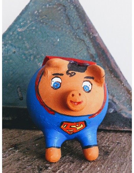 Cerditos huchas de cerámica cocida decorados a mano y personalizados para representar el personaje de tu superhéroe favorito. Batman, Superman, Capitan América, La Cosa, Iron Man, Thor, Loki, Spiderman, Hulk, La Viuda Negra, Ojo de halcón, Odín...